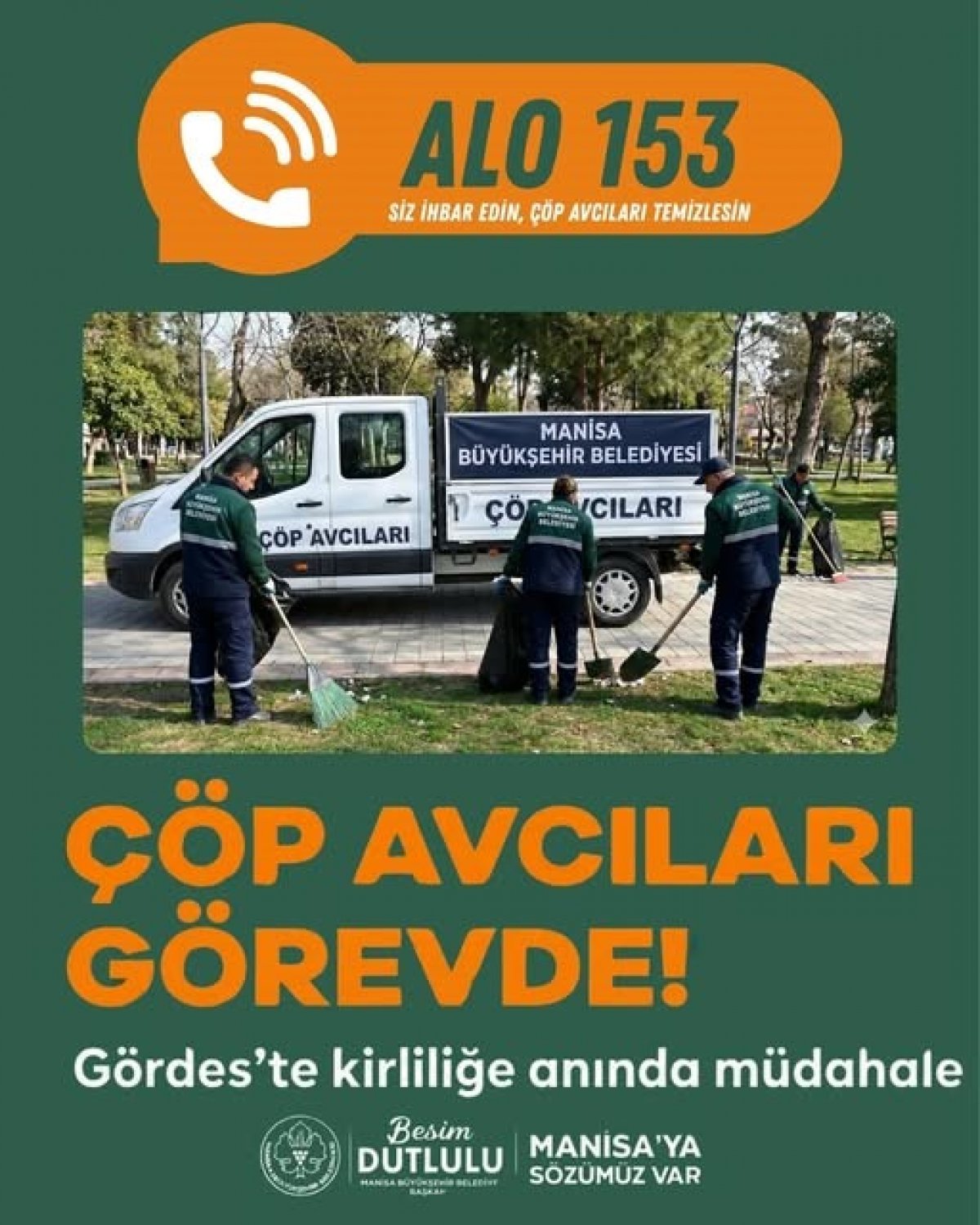 Gördes Belediyesi bu kapsamda; ilçemizde, sorumluluk alanında bulunan noktalarda çöp, moloz veya çevre kirliliğiyle karşılaşan vatandaşlarımızın durumu Alo 153 hattı üzerinden Manisa Büyükşehir Belediyesine bildirmeleri çağrısında bulundu.
