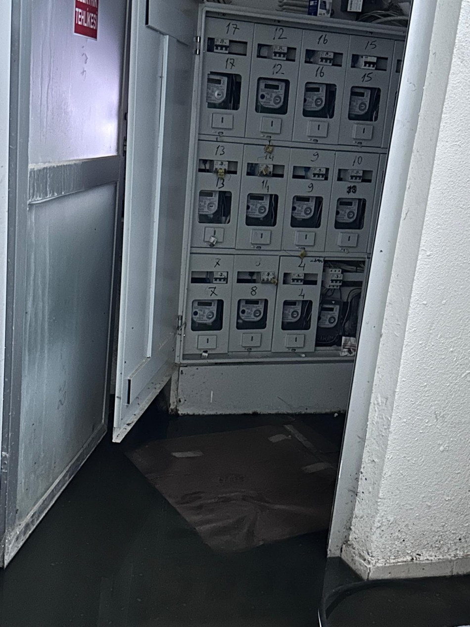 Binanın elektrik sistemi, su kaynayan bölümle yan yana. An itibarıyla; sayaç okumaya gelen yetkililer, manzarayı görünce dehşete kapıldı ve elektriği ana akımdan kesmek zorunda kaldı.