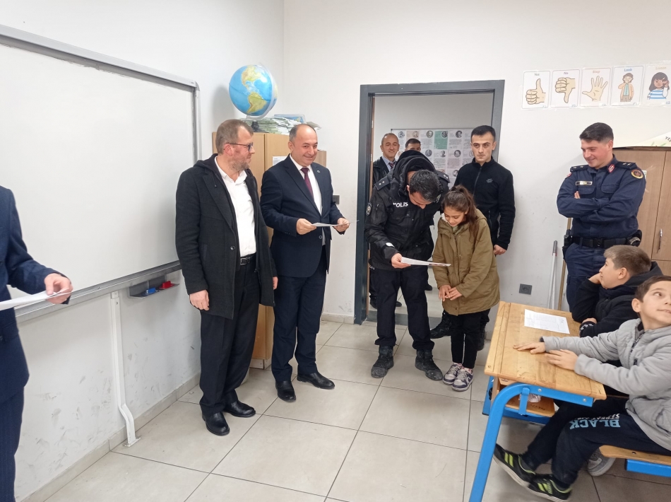 Öğrencilerin karne sevincine Kaymakam Sercan Sakarya ve İlçe Milli eğitim Müdürü İbrahim Coşkun Çelik te ortak oldu.