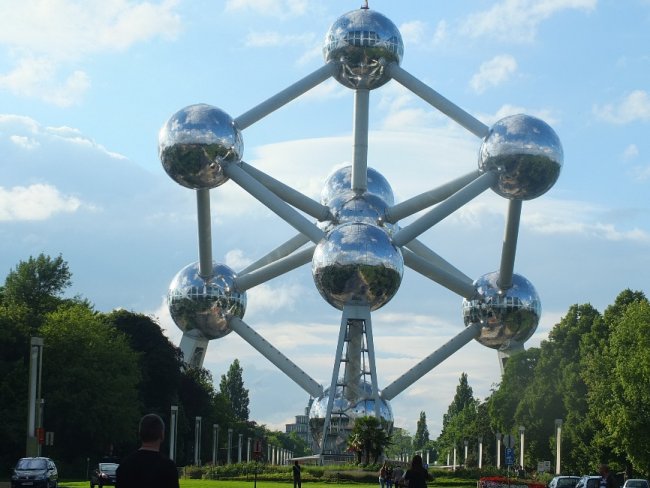 İlk durağımız Brüksel’in sembolü haline gelen Atomium yapısı idi. Bu yapı 1958 yılında uluslararası bir fuar olan EXPO 58 için yapılmıştır. Bu fuarlar teknolojideki son gelişmelerin sergilendiği yerlerdir. Tasarımcısı, bir inşaat mühendisi olan Andre Waterkey’dir. Atomium yapısı da bilimsel araştırma sonucu bulunan demir metalinin atom hücresini teşkil eden dokuz atomu temsil etmektedir. Demir’in bu kristal hücresinin 165 milyar kere büyütülerek yapının boyutları elde edilmiştir. Yüksekliği 102m dir. Yapı dokuz küreden oluşmuştur. Her bir kürenin çapı 18 m dir. Bu yapının fotoğrafı yazının sonunda bulunmaktadır.