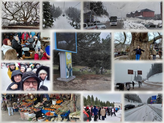 Yolun sol kenarında, üstü çadırla kapatılmış, gelenin geçenin ihtiyaçlarına cevap veren satıcılar var. Ürün yelpazeleri oldukça geniş. Yerli malı, yurdun malı… Aklınıza gelebilecek her türlü meyve çeşitleri, el işi örgüler (atkı, eldiven, bere, şapka…) pekmez, bal, kaynamış mısır ve kestane kebap tabii. Kuzine tipi soba hazır bekliyor. Saat 10.15’te hareket ediyor, tekrar tırmanmaya başlıyoruz.