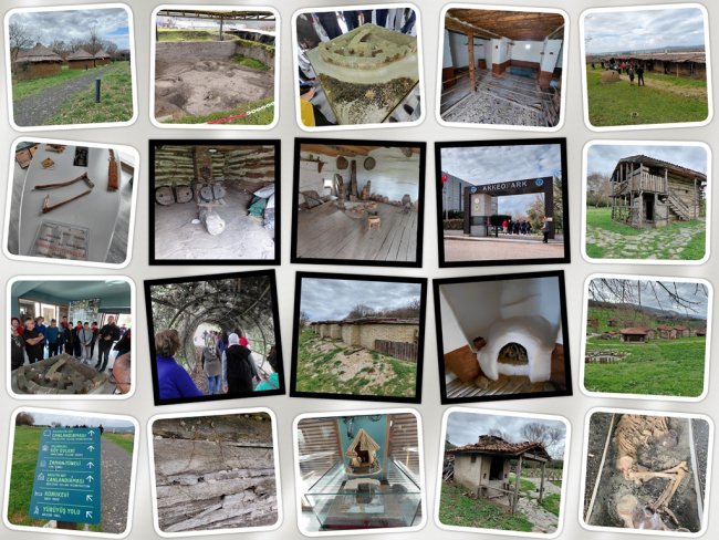Kalkolitik Dönem’e ait köy örneğinin yapıldığı yerdeyiz. Zamanımızda yere göğe sığamayan insanoğlunun tarih öncesinde küçücük bir odayı nasıl bir yaşam alanı haline getirdiğini dikkat ve ibretle görüyoruz. Kaç nesil, kaç asır böyle yaşadı, hayat sürdü. Açıklamaları dinliyor, ilk barınma yerlerini inceliyor, yapı teknikleri ile kullanılan malzemeler ilgili bilgi ediniyor, fotoğraflar çekiyoruz. Bu köy örneği ile ilgili bilgi notu şöyle: